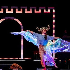 Bei »Mini hop«, unserem nonverbalen, interaktiven Konzertformat, entdecken Ein- bis Dreijährige mit ihrer Begleitung die Welt durch die Sprache der Musik. Dabei darf Mini, verkörpert von der Tänzerin Maartje Pasman, nicht fehlen! Diesmal heißt es: Willkommen im Garten der Elemente! Die Töne der Bratsche erden die quirlige Mini. Bei den fließenden Melodien von Klarinette und Cello träumt sie von Unterwasserwelten. Zu zart schwebenden Blockflöten- und Lautenklängen macht sie Luftsprünge. Und begleitet von Harmonika und Schlagwerk wagt Mini ein feuriges Tänzchen. Im Anschluss besteht die Möglichkeit zum persönlichen Kennenlernen und zur näheren Betrachtung des fantasievollen Bühnenbildes.