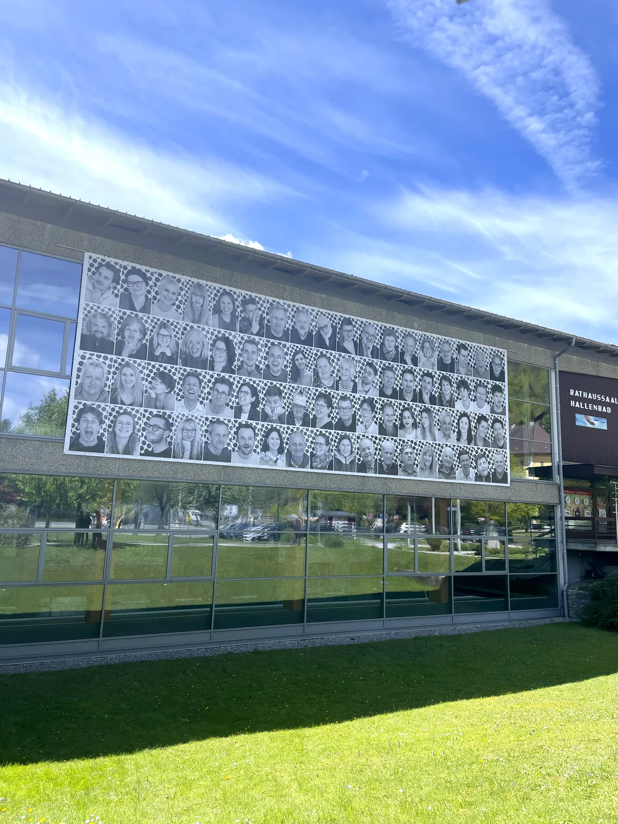 Ergänzend zu den ZAM-Aktivitäten in Ebensee im April 2024 wurden im Rahmen eines internationalen, partizipativen Fotoprojekts von Inside Out »ZAM – I am the people of Ebensee« großformatige Porträtfotos von Menschen aus Ebensee auf der Fassade des Rathauses präsentiert, ganz im Sinne des generationsübergreifenden Dialogs.